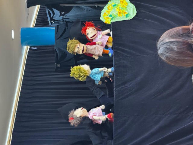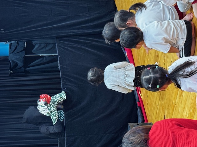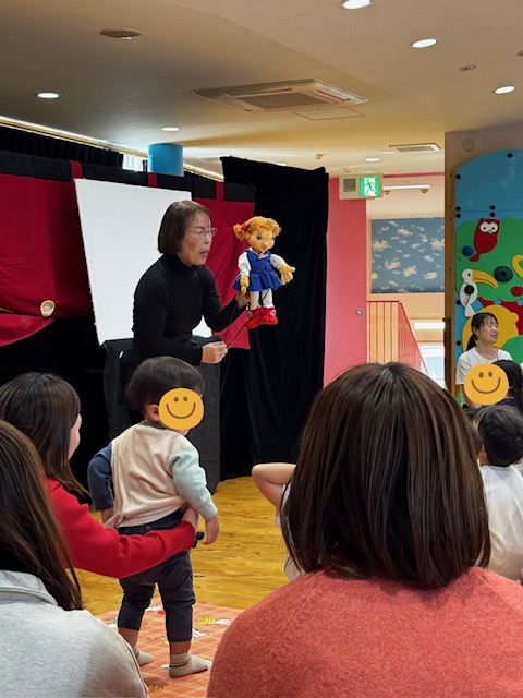 R7.10.2よちよちクラブ 10/2(木)朝夕少しずつ秋の風が感じられる季節になりましたね。10月はじめのよちよちクラブは人形劇団たたくファミリーさんが来てくださり、【大魔法使いラッキー】の観劇をしました。ストーリー性のあるお話だったので、よちよちのみんなには難しいかな?と思ったのですが、なんと!子どもたちは最後までお話に集中して見入っていました。普段の遊びとは違う人形劇ならではの時間は子どもたちの心の中にもきっと小さなワクワクや発見が残ったのではないかと思います。 2025-10-09