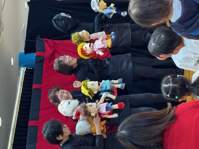 2/19 よちよちクラブ 2/19(木)今日のよちよちクラブでは人形劇団ビタミンPUさんによる人形劇をみました。お人形が元気よく動き回り、おもしろい動きをするお話で、一緒に観ていた園児たちがわあーー!と歓声をあげると、よちよちクラブの子どもたちもわくわくするようで舞台に歩み寄ったりして楽しそうに過ごしてくれました。4月からは新しい生活が始まるお友達も多く、よちよちクラブで会えるのは3月のあと2回となります。 残りの時間もみんなで楽しくたくさんあそびましょうね! 2026-03-02