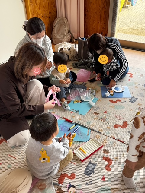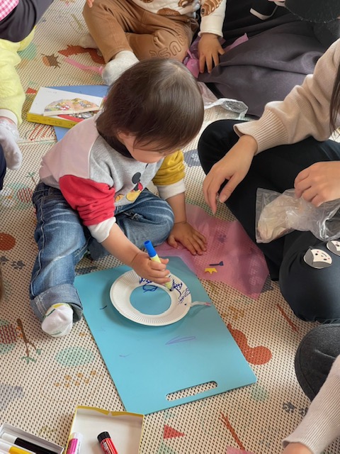 1月のよちよちクラブ 1月23日(木)のよちよちクラブは節分の鬼の三角帽子をお母さんと一緒に作りました。シール貼りやお絵描きをして途中「オニさんいや。こわい」というお友達もいましたが、お母さんがかわいいオニさんを作ってくれるとできあがった三角帽子をちょこんと頭に乗せてご機嫌で写真も撮らせてくれました。みんなで「おには外!ふくは内!」の練習も少しだけしましたよ。 2025-01-27