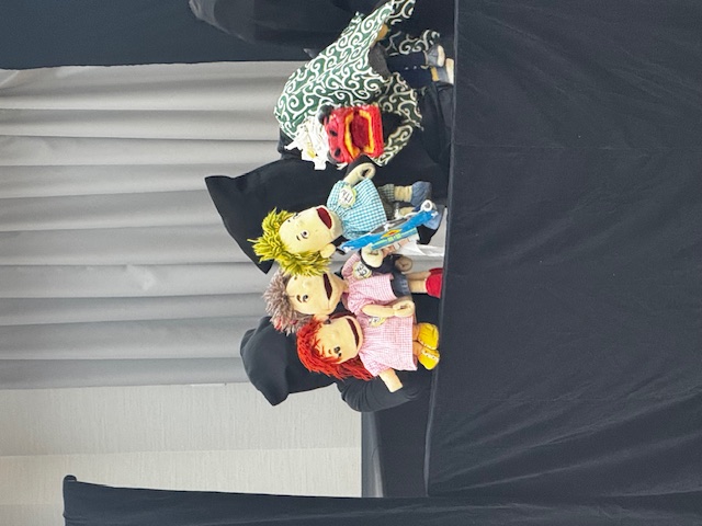 5月のゆりかごっこ(人形劇) きょうのゆりかごっこは、「人形劇団たたくファミリー」さんの人形劇を観ました。ストーリー性のあるおはなしで0歳や1歳のお友達には少し難しいかな?と思いましたが、お人形が大きく動く様子や流れる音楽にひかれるのか舞台をじっと見てくれていました。2歳の子は手拍子をしたり体を揺らしたりとても楽しんでくれていましたよ。 2025-05-14