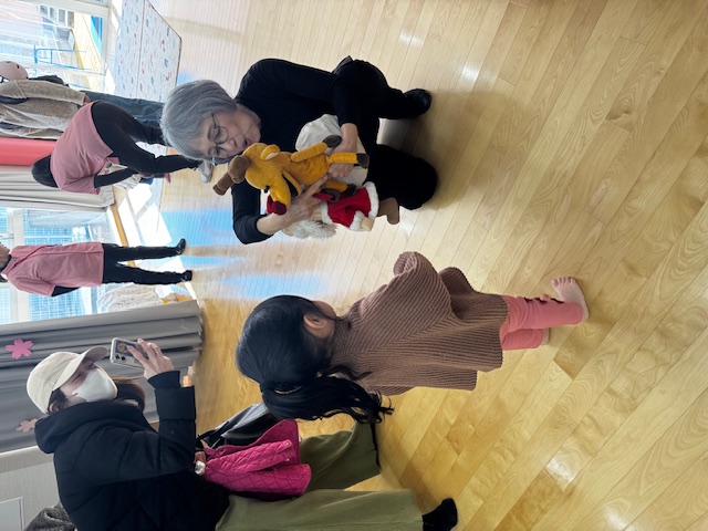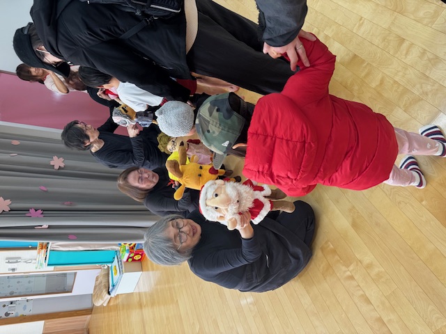 3月のゆりかごっこ 今日のゆりかごっこは、「ビタミンPU」さんによる人形劇を観ました。園児のみんなと一緒に観たのでにぎやかで時折、園児が歌ったり手拍子をするとゆりかごっこのお友達も一緒に体を動かしてくれていました。帰り際にお人形たちとハイタッチもできて、ゆりかごっこの楽しい思い出になってくれていたらうれしいです。 2026-03-10