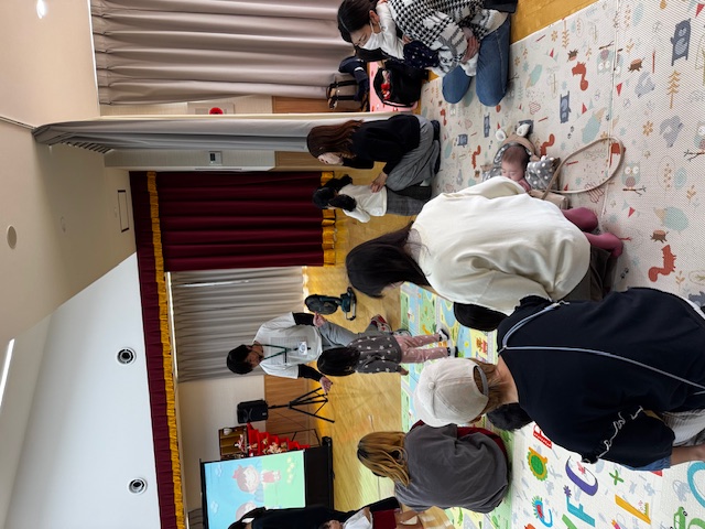 10月のゆりかごっこ2 10/21(火)この日のゆりかごっこは、【あっぷう】さんによる人形劇を観ました。2歳以下の小さい幼児向けの簡単なお話をしてくださり、最後まで楽しく過ごすことができました。先週まではあんなに暑かったのに、今週からは初冬のような気温です。こどもたちの体調管理ももちろんですが、保護者の皆さんも体調を崩されないようにくれぐれもお気を付けくださいね。 2025-10-22