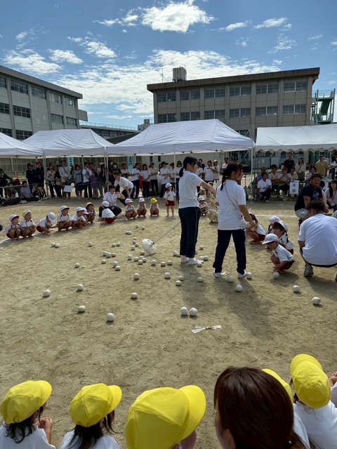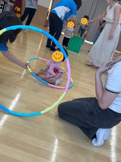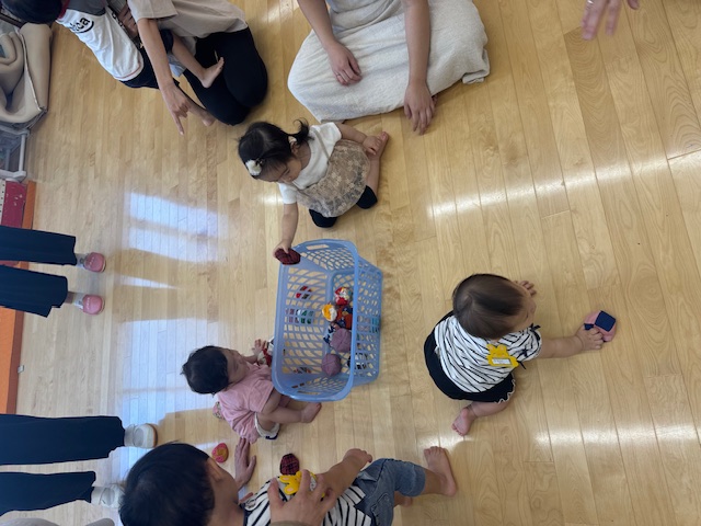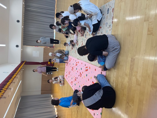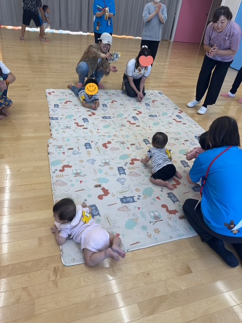 9月のゆりかごっこ2 9/30 (火)今日のゆりかごっこは「うんどうかいごっこ」をしました。ハイハイ競争では小さな手足を一生懸命動かしてゴールを目指す姿に、みんなで大きな声援!玉入れではお手玉をお母さんと一緒にゴールめがけてポイっと投げてチーム対抗で大盛り上がりでした。サーキットあそびでは笑顔いっぱいに挑戦してとても賑やかで楽しい時間になりました。こどもたちの頑張る姿と親子での笑顔がたくさんみられた運動会でした。 2025-09-30