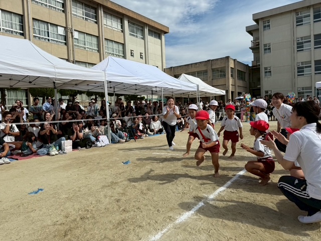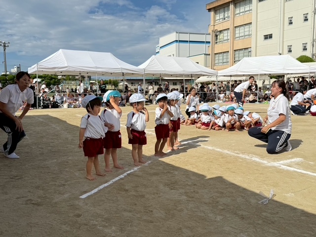 運動会 土曜日に2歳児から5歳児クラスのこまどり、ゆりかご合同運動会がありました。お天気にも恵まれ、子どもたちもニコニコ。かけっこやリズム、ポンポン、パラバルーンや鼓隊などどのプログラも一生懸命演技してくれました。親子競技ではお家の方と一緒でみんなとってもうれしそうでしたよ。子どもたちのかわいいい姿、かっこいい姿が見られて楽しい運動会になりました。 2025-09-30